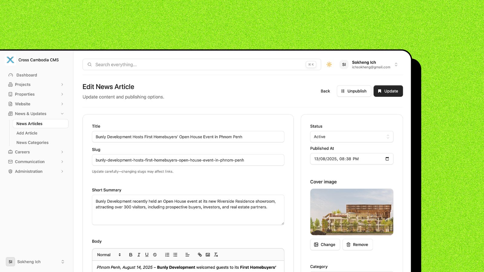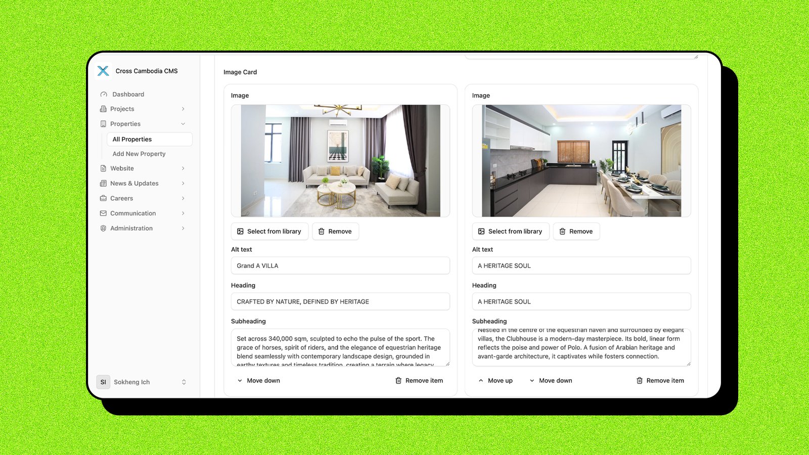 Centralized Source of Truth: A single CMS module that syncs all property data instantly to the public storefront and marketing channels.